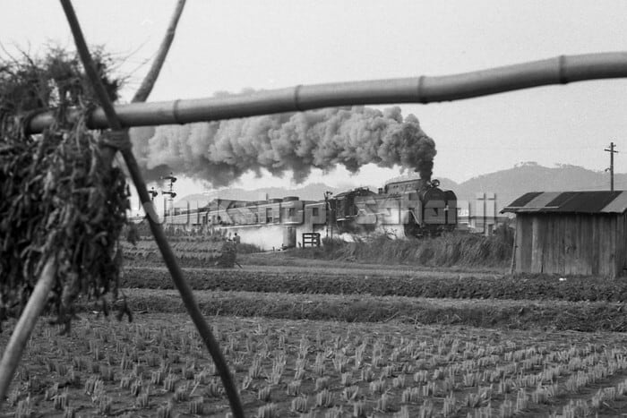 D511 関西本線木津-加茂間 昭和48年11月3日か23日。 SL廃止後に走ったイベント列車。 本当は手前に電柱があるのですが、画像処理して電柱を消しました。 1506x1004px
